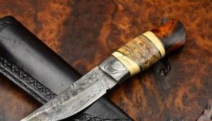 瑞典粉末纯手工锻造大马士革钢+黄花梨木榴