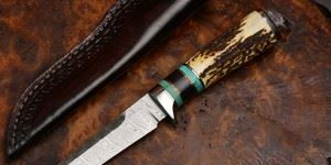 瑞典粉末大马士革钢鹿角+黑檀木+绿松石+不锈钢(两头包尾)