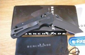 品牌BENCHMADE 美国蝴蝶 型号904SBK 材质154CM 全长17.2 CM 刃长6.8 CM 刃厚0.3 CM 刃宽2.35 CM 硬度58 HRC 柄材G-10 产地美国 附件原装刀袋 刀型折刀 类型轴锁 重量82克