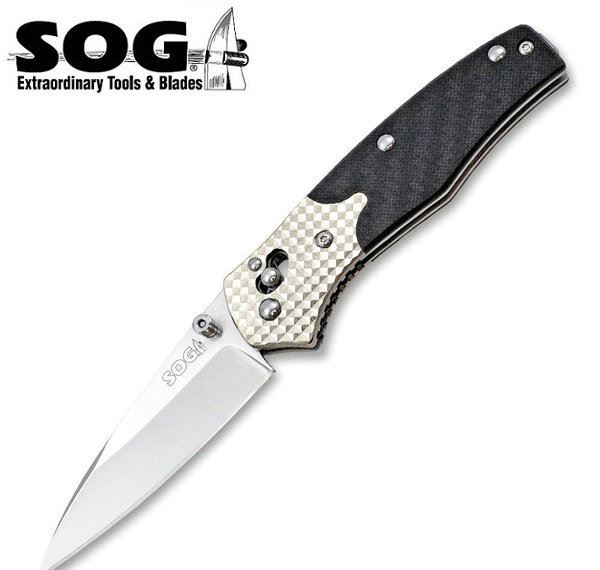 在SOG出厂刀中所属高级刀具、手柄握把采用CARBON纤维制成、上端采纯银表明镍银处理制作。独特设计的Arc-Lock加上VG-10 san mai 三美钢材、可让您更有力的使用。