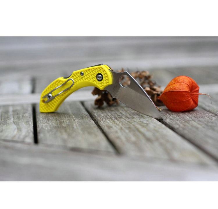 SPYDERCO 美国蜘蛛 C28PYL2 蜻蜓二代 黄色FRN柄H-1钢全刃折刀