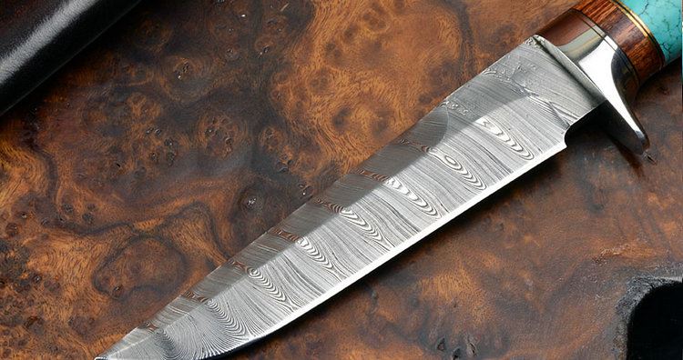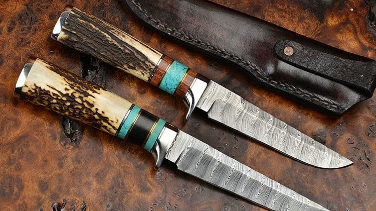 瑞典粉末大马士革钢鹿角+黑檀木+绿松石+不锈钢(两头包尾)