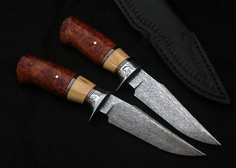 瑞典刀匠纯手工锻造大马士革钢+覆土烧刃+花梨木榴