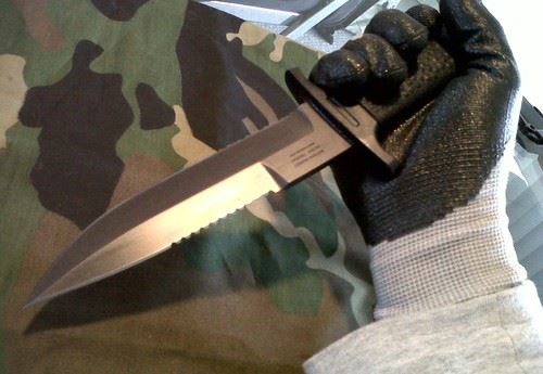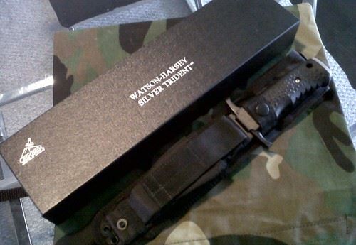 Gerber公司银三叉戟使用技术上最先进的处理设计的战斗刀。它能够抗高温,紫外线和化学品 - 由拥有丰富作战经验的老兵-前海豹部队指挥官James Watson设计和定制刀大师Bill Harsey 共同设计完成。三叉戟很可能是第一个由真正的海豹部队老兵参与设计的战斗刀的产品刀型号(Strider以及Chris Reeve 的Yarborough属于手工刀范畴),我们拭目以待。