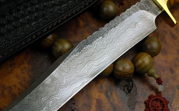 瑞典粉末420层大马士革锻造钢 非洲檀木+黄铜 +覆土烧刃处理 全长;47.5CM;刃长:34.5CM;柄长:13CM;宽:4.5CM;柄:非洲檀木(高硬度);护手:黄铜 刀身:420层大马士革锻造钢(全龙骨) 覆土烧刃处理 硬度:60 上一款:瑞典粉末420层大马士革锻造钢 鹿角+黄铜 下一款:瑞典粉末大马士革 黄花梨+黄铜 +覆土烧刃