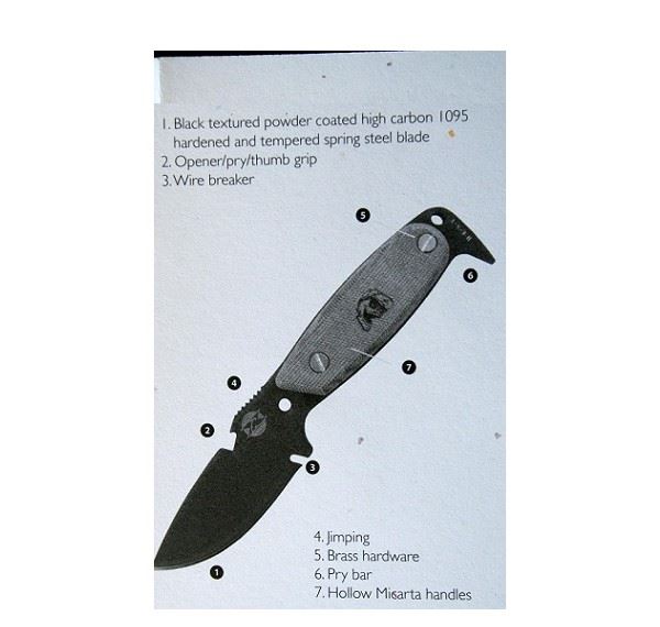 Ontario Kinfe Company“安大略刀具公司”位于美国纽约州的东南部的安大略省,是美国历史最悠久的刀厂之一,自于1889年成立至今已有122年的历史。见证了北美刀具的发展和演变。公司专业生产各类运动刀具,从军事、运动、渔猎以及厨刀和农具等等。种类丰富,品种繁多,还出口到全球28个国家。这其中还有一个重要的身份就是“美军采购供应商”,公司自20世纪50年代起就开始向美国政府和军队提供刀具。 Overall Length: 7.62" (全长19.3厘米) Blade Length: 3.25" Blade Thickness: 0.188" Blade Material: 1095 Tool Steel (Carbon) Blade Rockwell: 57-58HRC Handle Material: Green Canvas Micarta Weight: 5.00 oz. Sheath: Kydex Sheath Weight: 3.40 oz. Country of Origin: USA