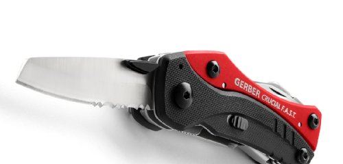 Gerber Crucial Multi-Tool with stainless steel construction. All tools lock open for safety. The assisted opening blade has an additional safety so you cannot accidentally activate the FAST assisted opening. Stainless steel pocket clip for carry. Features: Needlenose Pliers Regular Pliers Assisted Opening Locking Partially Serrated Knife Blade Long Medium Flathead Screwdriver/Bottle Opener Long Medium Cross Driver Pinch Style Wire Cutters Length: 5.50" Blade Length: 2.38" Blade Steel: Stainless Steel Handle Material: Stainless Steel Weight: 5.80oz.