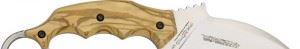 FOX 意大利狐狸 FX-637OL PARONG 橄榄木柄虎爪战术格斗刀刀型极其凶悍,水滴型刀刃造型独特,深受收藏者肯定,这是一款非常适合肉博战的高灵活度战斗刀,用于自我防卫相当适合,刀刃锋利坚固,手柄使用橄榄木,造型符合工学设计,可完全贴合手掌不易滑脱,附咖啡色皮质刀鞘。 品牌 FOX 意大利狐狸 型号 FX-637OL 材质 N690 全长 22.5CM 刃长 9.5CM 刃厚 0.4CM 刃宽 4.5CM 硬度 58 HRC 柄材 橄榄木 产地 意大利 附件 真皮刀鞘