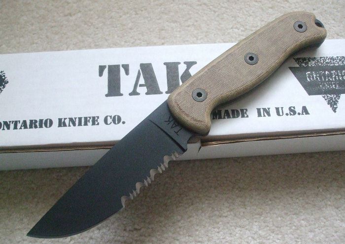 ONTARIO 安大略 TAK-I Ser 1095钢黑色半齿战术直刀是ONTARIO为美军在阿富汗战争设计并使用的一款战术直刀。