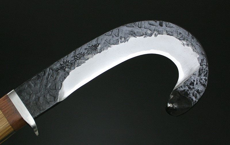 Kanetsune 日本关兼常 TS-81 钩形狩猎刀由关兼长所制的刀款是专门针对狩猎人士所设计制作的一把钩形状的猎刀,全刀采日本日立金属所制之青纸二号钢材制作,握柄以结实槛木制成,主要用途类似剥皮刀,但它的破坏力更远胜于一般用刀;用于肢解野兽外皮及内脏硬骨方面能发挥强大的功效,对于经常狩猎人士是相当不错的选择。