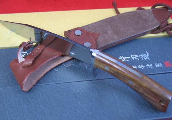 产地 日本Kanetsune 关兼常 KB-142 Makiri 魔鬼利 閞伝和鉄纸煉 直刀 刀鞘:皮鞘 柄材:黄檀木木材 刃材:日本顶级蓝钢,Blue Steel 日本岐阜县关市自谦仓时期以来就以制刀闻名于世,日名刀匠关兼常即传承此一传统制刀技术及风格,复以自身苦习,融合传统现代之技术,制作了闻名世界之刀款,凡用刀或搜刀之人莫不以拥有关兼长之刀为傲,凡是刀上有“关兼常作”就是品质与实用的保证.