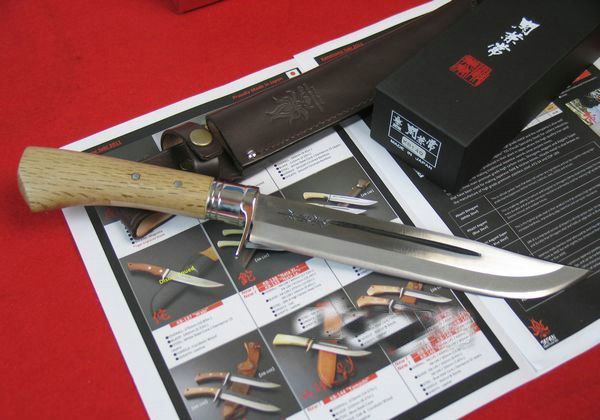 以日本法打造的獵刀,採鐵與鋼相結合,擁有三樣特徵:(一)擁有良好切割性,及平衡手感;(二)鋼材部分硬而薄,包夾在鐵裏的鋼,會順著磨刀的角度,依序往上露出,永保刃口鋒利;(三)經水淬火刃口形成波浪紋路,甚至起微妙的晶化而泛藍光,渾然天成的美感實歐美刀具無法比擬。