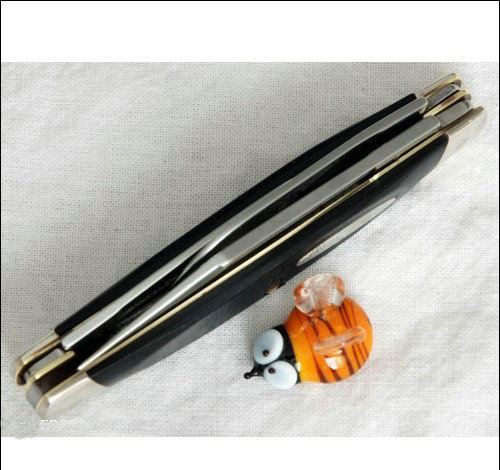 巴克303是中等尺寸的三刀片传统口袋刀。刀柄有铁锤标记(是BUCK的商标,铁锤敲打刀背)。很小巧,平时外出很方便携带,应付日常使用也是足够了,没有带锁定装置,不属于管制刀具的范畴。 BUCK刀是北美制刀业中最出名的,以高品质而闻名。第一把BUCK刀生产于1902年,是年轻的刀匠学徒Hoyt Buck设计的。通过对钢材的回火处理从而使刀刃能够长久的保持锋利。Hoyt每把刀都是手工刀,他用废旧的锉刀做原材料。在二战期间,他做了很多刀来帮助北美的军队。在战争结束后,他去到圣地亚哥,和他的大儿子AL BUCK在1947年创办了H.H. Buck & Son公司。Hoyt去世于1949年,他的大儿子Al 接手领导公司度过了又一个关键的一年。 1902年Hoyt Buck设计制造出第一把BUCK刀,从那时开始,BUCK刀就开始设计CrossLock系列的刀,并在1994年获得了刀具年度大奖在1963年,Al BUCK设计的BUCK110可折叠猎刀引起了刀界工业的大革命。buck刀都是终身保修的,它的刃材使用美洲改造的不锈钢,高碳,高铬,使它的硬度保持在57-58HRC,并保持锋利的刀刃。经过多年努力,BUCK始终是大家公认的品牌。在美国人的心目中BUCK占有不可替代的主导地位,就像在中国提及“王麻子”刀剪一样出名,其经典产品110,119型猎刀是很多刀具设计制造的模坂和参考对象。钢材硬度高于同等类型的刀具,其425M钢材甚至硬于某些品牌的ATS-34钢材。 由于BUCK公司的冶炼技术领先超前,很多的厂商也与其联手开发高科技产品,著名的菲罗比斯公司设计的美军M9多用途刺刀就是由BUCK公司OEM出品的。2000年,BUCK公司与STRIDER公司的结晶产品BUCK880B系列折刀,在世界折刀市场也掀起了不小的波澜!美国BUCK公司在海外无分厂,全都在美国基地生产。 品牌 BUCK 美国巴克 型号 303 材质 420HC 全长 13.8CM 刃长 6.5CM 刃厚 0.2CM 硬度 58-60HRC 柄材 镍银合金柄 产地 美国