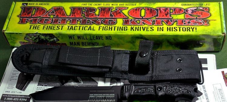 DARK OPS(夜魔)是美国著名的专业生产战术用具的公司,涵括的产品非常多,从战术手电,战术刀具,户外生存用具,每一件产品都是贴身为使用者的角度设计,充分以好用,安全,合理,时刻保护使用者为设计基准。 DARK OPS也生产户外用和求生战术刀具,虽然刀身较大,但因为使用超轻巧材质,所以拿在手中也不感笨重、主要设计师有原海军特殊部队出身、世界最高战斗技术指导者的巴萨尔. 类 型: 直刀 型 号: DOH101 全 长: 315mm 刀 长: 175mm 柄 长: 140mm 刃 材: CTV2 表 面: 黑色钛碳涂层 硬 度: 58-60HRC 刃 厚: 6mm 柄 材: 纺纶复合材料 刀 鞘: 战术尼龙 重 量: 348g 原产地: 美国