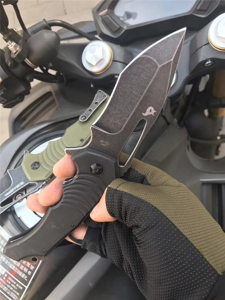 意大利狐狸BF721折刀 钢材:440C 硬度:HRC 57-59 刀长:10CM 总长:23CM 刃厚:4mm 重量:180克 刀柄:G10 意大利狐狸 BF721折刀(奥丁双肩上栖息着两只乌鸦,分别是代表“思维”的胡津(Hugin),及代表“记忆”的雾尼(Munin)奥丁的眼线) 上一款:FOX狐狸632小武士直刀 下一款:FOX 意大利狐狸FOX ART.SF-C02 SPARTAN FOX COMBAT 意大利军用刀