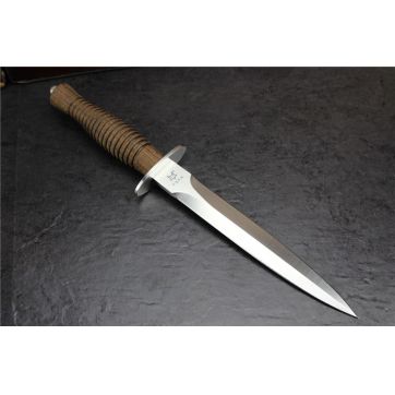 FOX狐狸FX593双刃格斗剑 钢材:N690钢材 刀长:17CM 总长:30CM 刃厚:5mm 重量:180克 手柄:胡桃木 刀鞘:皮鞘 经典欧洲短剑进化改良而来 上一款:意大利狐狸FOX 680T“MACIO II M/CO ABS”砍刀 下一款:FOX意大利狐狸682N罗马风格经典战斧黑木柄小型狩猎斧