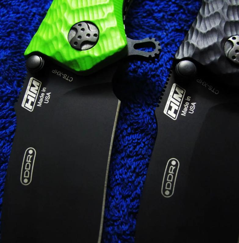 美国HTM DDR手动和自动侧跳刀 左1-4为半自动,左5-6为全自动。全自动已绝版,稀有。 全长:20.3cm。 刃厚:3.9mm。 刃材:CMP S30V(左1、2)CTS-XHP(左3、4)CMP S35VN(左5、6)。 硬度:60-62。 柄材:T6 6061。 产地:美国。 下一款:兰博心脏停止者