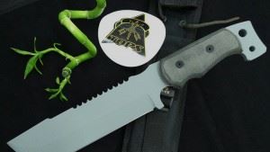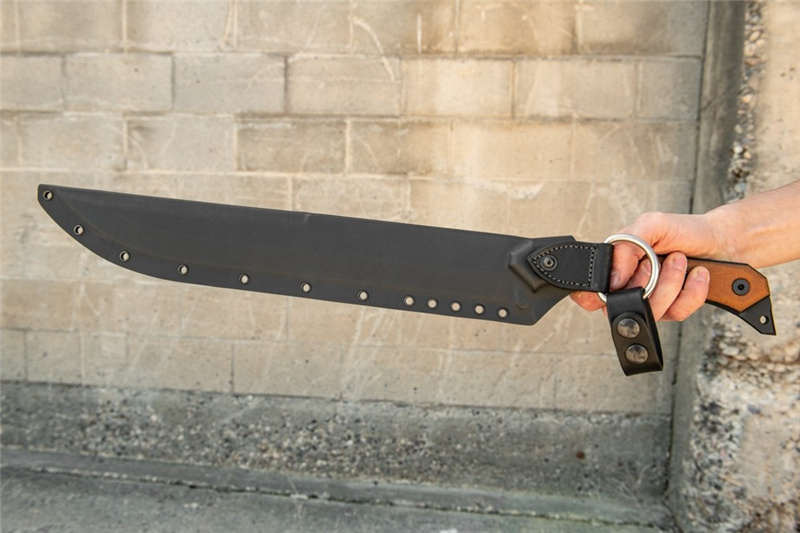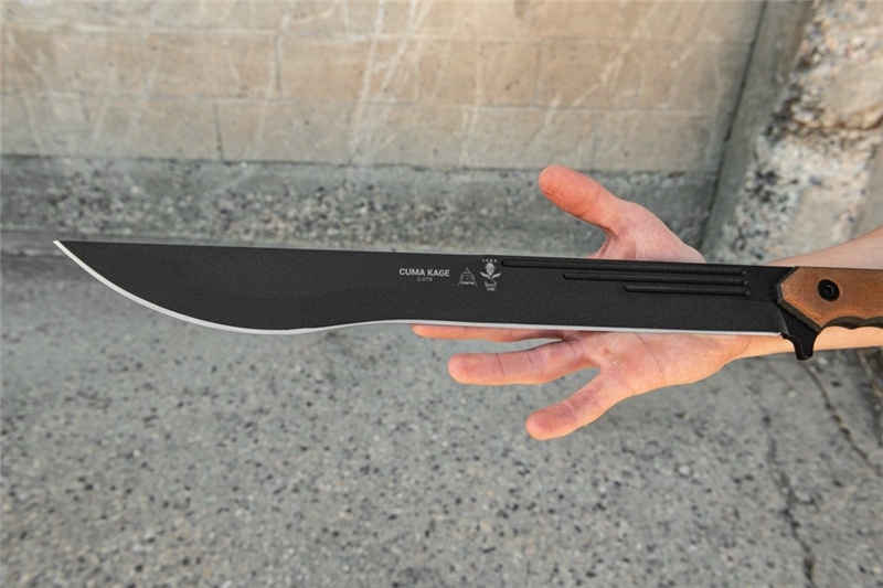 TOPS美国尖端战术影之剑CUMA Kage排障刀 全长:60.3CM 刃长:39.4CM 刃厚:0.63CM 刃材:1095高碳钢 硬度:58HRC 表面处理:黑色涂层 刀柄:一体龙骨双层双色米卡塔贴片 刀鞘:K鞘 皮环悬挂 重量:35.5盎司不含鞘 设计:Wayson Johnny Tsai 产地:美国 上一款:TOPS美国尖端战术TAC-TOPS Karambit Fixed Blade大型爪刀 下一款:TOPS美国尖端战术SXB碎颅者大背齿生存刀