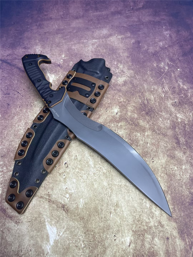 KHAI2023新款战术版角斗士黑款尼泊尔狗腿弯刀 长度:46cm 重量:760g 厚度:0.65cm 这是KHAI第一次尝试做彩色陶瓷涂层,世界顶级陶瓷涂层~美国cerakote,色泽,质感是任何一款图层都无法比拟的。同时去兼备耐高温,高硬度,高附着力的特点。行业内常见的就是微技术的一些彩色的叨片,在这么大尺寸的劈砍叨具上使用还是比较罕见的。黑色为标准款 PVD镀钛 上一款:KHAI战术泰雅直刀黑刃 下一款:KHAI2023新款战术版角斗士彩色款尼泊尔狗腿弯刀