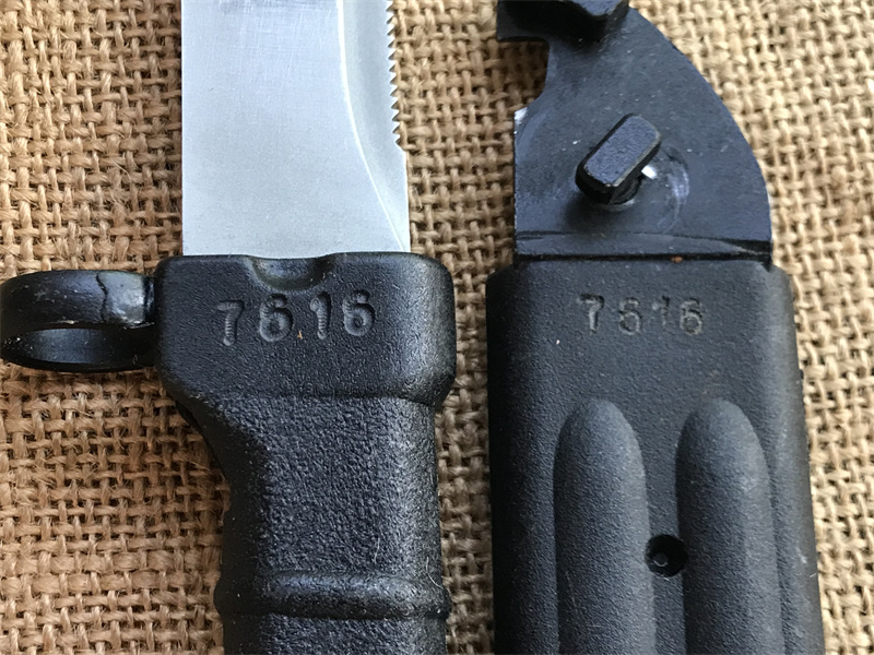保加利亚人民军现役装备,全新库存状态,每把都有手工盖制的军检标和双圈10预留章。刀尖特制,具有强大的穿刺力,刀柄和刀鞘采用最新材质的工程塑料,不但防火绝缘而且非常轻盈。保加利亚军版原品。