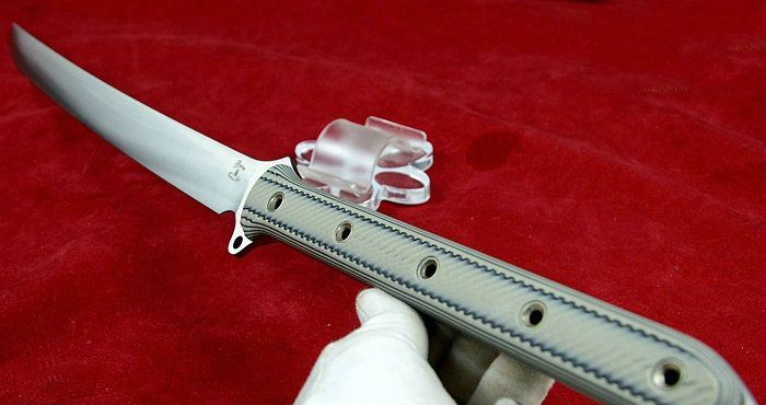 全 长: 735mm 刃 长: 470mm 刃 材: INFI 硬 度: 60HRC 表 面: 钢本缎面定制店 刃 厚: 5mm 柄 长: 268mm 柄 材: 橙黑双色G10 重 量: 877g 产 地: 美国