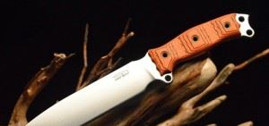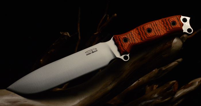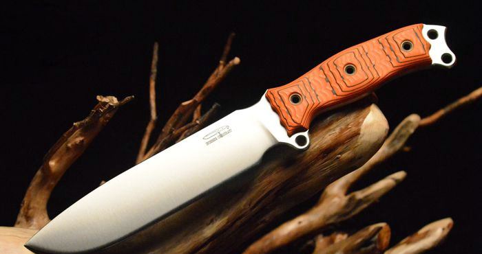 相信资深刀友对Busse这个名字一定非常熟悉,BUSSE刀具公司主要做独特的定制高端刀具。BUSSE刀具从最原始的生产作坊成长为现在非常现代化和高度自动化的刀具公司仍然一惯坚守“生产世界上最高品质刀具,提供业界最严格终身保证”的宗旨,使公司很快就发展成为高品质刀具界的领头人,并且一直倍受关注。 正因Busse刀具创造了至高无上的品质传奇,使得20几年以来数以千记的 Busse 刀具被业界接受和珍藏;由于其非凡的品质,使得Busse刀具有“核战刀具”这一美称。因此,拥有一把Busse刀具是大多数刀友们的理想与追求。 Busse从简陋的小作坊一路成长为世界顶级刀具制造商,他们从不骄傲、从不自满,作为高性能战斗刀具的世界领导者,Busse不曾将最初的目标遗忘——The World Leader in Extreme Performance Knives(做极端性能刀具的世界领导者)! INFI全角度透视 硬度:经热处理后INFI的硬度可达58-60HRC,这样的数据说起来并不突出,但在同等硬度下它的延展性是最好的,用作刀身坚韧不易折断。 灵活性:在巴斯公司对INFI的测试中,将使用INFI做刀身的Battle Mistress(战斗情妇),用虎钳折弯35度依然可以自动弹回,如同弹簧般,展现出INFI强大的韧性和均匀的横向强度。 刀锋保持力:许多刀具专家总是把到刀锋的保持力和抗磨损性能联系在一起,这当然是一种正确的说法。INFI在硬度和耐磨性上取得了良好的平衡,因此边缘保持上也表现不凡。 防锈性:经试验证明,带着一把INFI的刀具穿过高山荒野、热带雨林时,在抗污防锈上展示了自己最杰出的一面。虽然它的铬含量并没有达到不锈钢的标准,但在防锈上已经十分突出。毕竟,它是巴斯战斗刀的专用刃材,还可以增添涂层进一步提升防锈性。 型 号: NMSFNO 全 长: 358mm 刃 长: 200mm 刃 材: INFI 硬 度: 58-60HRC 表 面: 钢本缎面 刃 厚: 6.4mm 柄 长: 145mm 柄 材: 橙黑双色G10 重 量: 650g 产地: 美国