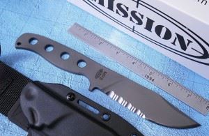 The MPS was designed with the input and suggestions of NAVAIR, U.S Marine Recon units, units of the Army’s Special Operations Command, and various United States Special Operations personnel. The MPS slides easily into existing pilot survival knife sheaths. Many back packers, hikers, mountain climbers and campers have commented that the MPS is the perfect utility knife. The MPS-Ti is made with our special blend of titanium, which has very superior wear resistance and is “thru-hardened” to Rockwell C 47, while still maintaining its flexibility. This knife will never rust and is non-magnetic. The MPS blade is a smaller version of our MPK model with the same versatile blade belly which makes it an excellent utility and survival knife. The additional spine serrations on the MPS allow for more thumb pressure, grip and control for delicate cutting tasks. The distinctive skeletonized handle fulfills requirements where ultimate light weight and thin profiles are demanded. The MPS-Ti is available in an approximate 10” length, .250” thickness, serrated or plain, with a skeletonized handle and a Kydex sheath. Optional handles include G10 composite material with titanium screws or braided cord wrap in your choice of color (ACU, Black, Blue&Red, Blue, Black&White, Desert Sand, Desert Tan, Bright Green, Multi Camo, Olive, Orange, Red, Red&White, Tan, Woodland Camo, Yellow&Black, or Yellow). MPS的设计经过海军航空兵、海军陆战队、陆军特种部队和美国各特种作战部队的专业人员的意见和建议。远足、登山、露营的爱好者对于这把刀也有很高的评价。这把刀是一款小号的MPK。而这款刀有多个版本。 这把刀是镂空手柄钛合金半齿版本。 钛的优点: 1、耐腐蚀性:钛可以自然界各种环境中展现超强的耐腐蚀性。MPK SEAL刀在海水里浸泡了多年而没有出现一丝的腐蚀。 2、重量轻:钛比钢轻40% 3、稳定性:钛无论是炎热还是冰冷的环境中,其稳定性都要好于钢材。 4、耐磨/耐磨损性:钛是一种自我修复金属,在打破外部的氧化膜时,其会自动会新的氧化膜,这使得它在抵抗如灰尘、沙子、冰、泥浆等物品时而不被侵蚀。 5、优良的延展性:海豹突击队一直无法打破MPK-TI超过六年的服役时间,这是由于钛的12%的伸长率,韧性和弹性十足。 6、坚韧:钛很难在高温或者低温的影响和压力下发生断裂和破碎。 7、灵活性:钛可能在发生弯曲,但却不会发生断裂。 8、无毒:钛具有无毒性和生物惰性。 9、强度-重量比:在相同的强度下,重量很轻,和钢材相较;或者说,在相同的重量下,强度很大,和陶瓷相较。 10、非磁性:钛是磁惰性,这点对于特种部队,在进行特殊任务,如排爆、水下渗透时,具有很好的功效。 品牌 MISSION 美国使命 型号 MPS10-TI 材质 钛合金 全长 24.7CM 刃长 11.3CM 刃厚 0.63CM 刃宽 3.4CM 硬度 58HRC 柄材 钛合金 产地 美国 附件 Kydex鞘