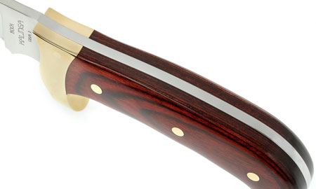 The Kalinga is one of the favorite Buck models. It was Al Buck's personal favorite. With a large sweeping skinner blade and ergonomic handle design, this beautiful and elegant collector's version utilizes agorgeous rosewood with brass guard handle and a 420HC blade. Made in the USA About the B&C Club: Founded by Theodore Roosevelt in 1887, the Boone and Crockett Club promotes guardianship and visionary management of big game and associated wildlife in North America. The Club maintains the highest standards of fair-chase sportsmanship and habitat stewardship. Member accomplishments include enlarging and protecting Yellowstone and establishing Glacier and Denali national parks, founding the U.S. Forest Service, 美国著名刀厂BUCK公司此款经典折刀众所皆知,风格古典高雅且传统的原创造形广受爱刀之人士喜爱,经典木柄结合黄铜材质历久弥新, 刀身采420HC高级不锈钢搭配高质感黑色皮套让您无论在户外狩猎、钓鱼亦或露营使用上皆可感受到在传统且简单设计外的绝佳使用流畅性。 BUCK刀是北美制刀业中最出名的,以高品质而闻名。第一把BUCK刀生产于1902年,是年轻的刀匠学徒Hoyt Buck设计的。通过对钢材的回火处理从而使刀刃能够长久的保持锋利。Hoyt每把刀都是手工刀,他用废旧的锉刀做原材料。在二战期间,他做了很多刀来帮助北美的军队。在战争结束后,他去到圣地亚哥,和他的大儿子AL BUCK在1947年创办了H.H. Buck & Son公司。Hoyt去世于1949年,他的大儿子Al 接手领导公司度过了又一个关键的一年。 1902年Hoyt Buck设计制造出第一把BUCK刀,从那时开始,BUCK刀就开始设计CrossLock系列的刀,并在1994年获得了刀具年度大奖在1963年,Al BUCK设计的BUCK110可折叠猎刀引起了刀界工业的大革命。buck刀都是终身保修的,它的刃材使用美洲改造的不锈钢,高碳,高铬,使它的硬度保持在57-58HRC,并保持锋利的刀刃。经过多年努力,BUCK始终是大家公认的品牌。在美国人的心目中BUCK占有不可替代的主导地位,就像在中国提及“王麻子”刀剪一样出名,其经典产品110,119型猎刀是很多刀具设计制造的模坂和参考对象。钢材硬度高于同等类型的刀具,其425M钢材甚至硬于某些品牌的ATS-34钢材。 由于BUCK公司的冶炼技术领先超前,很多的厂商也与其联手开发高科技产品,著名的菲罗比斯公司设计的美军M9多用途刺刀就是由BUCK公司OEM出品的。2000年,BUCK公司与STRIDER公司的结晶产品BUCK880B系列折刀,在世界折刀市场也掀起了不小的波澜!美国BUCK公司在海外无分厂,全都在美国基地生产。 型 号: 0401RWSBC 全 长: 254mm 刀 长: 120mm 刃 材: 420HC 硬 度: 58-60HRC 表 面: 镜面处理 刃 厚: 4.5mm 柄 长: 134mm 柄 材: 红木 重 量: 319g 原产地: 美国