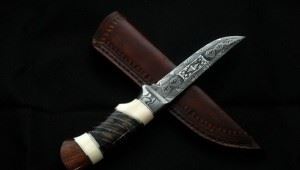 瑞典顶级刀匠锻造大马士革钢+猛犸象牙臼齿化石+沙漠铁树木榴+海象牙 名贵刀