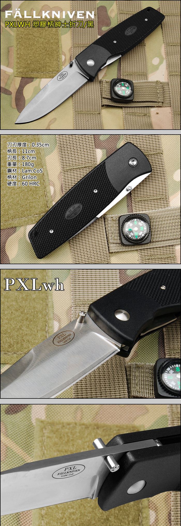 Fallkniven PXLwh折刀是皇家FK今年的最新产品,设计简约、实用、厚重、质朴。刚好符合了北欧人民的风格。此款折刀刃材选用新型Lam.cos钢材,硬度高、防腐蚀性强。手柄选用了新开发的材料,表面的细小颗粒具有很好的防滑作用,这种新型材料我们称为格里兰,并被认为是所有塑料中最可靠的。它是一款非常不错的高档随身折刀。 刃材: Lam.cos 柄材: 格里兰 锁型: 线锁 全长: 19.9厘米 刃长: 8.8厘米 闭合: 11.1厘米 刃厚: 0.35厘米 硬度: 60HRC 重量: 170克 品牌: 瑞典 产地: 瑞典+日本 PXLwh是一把重量輕且非常可靠的折疊刀,刀片是全新的特殊鋼材,它帶來了不可思議的銳利度與強度,可持續使用更長的時間。具有一組成熟的刀刃鎖定系統。刀刃兩邊具有拇指柱,只需一隻手即可開啟刀刃。握柄使用新開發的材料,稱之為GRILON,被認為是所有塑料中最可靠的。